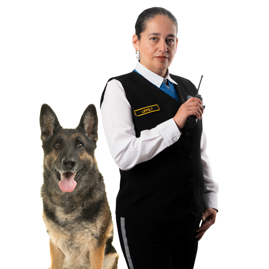 Unidades caninas entrenadas para detección y disuasión, ofreciendo un nivel adicional de seguridad en la protección de espacios y personas.